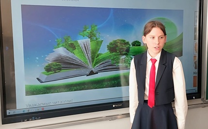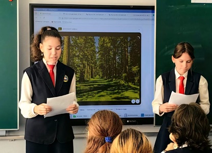 В рамках акции «Зелёная Россия» ученицы 7 «Б» класса Файзуллина Эмилия и Шередеко Дарина провели для одноклассников увлекательный читательский час «В экологию через книгу».